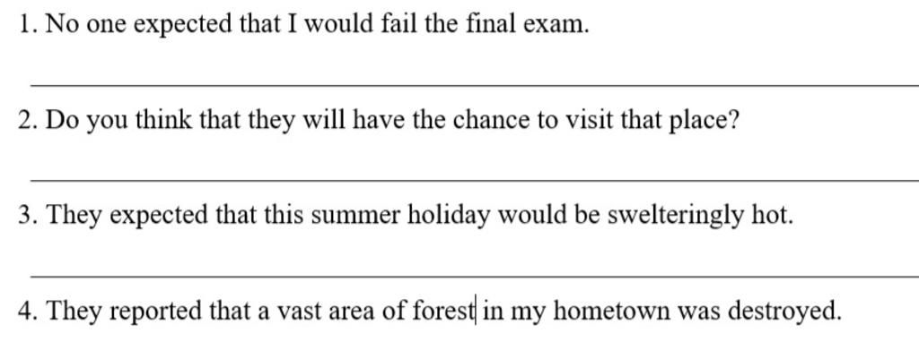 4. It was reported that a vast area of forest in my hometown was destroyed.