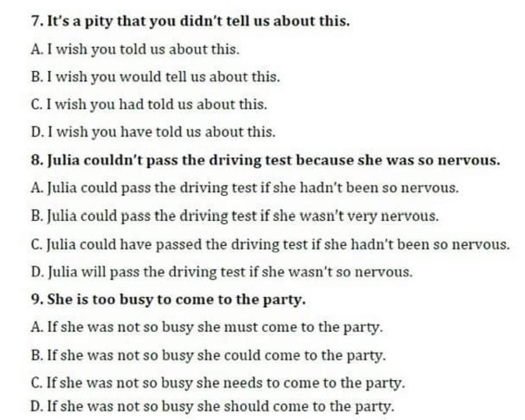Áp dụng cấu trúc về wish ở quá khứ , ta có