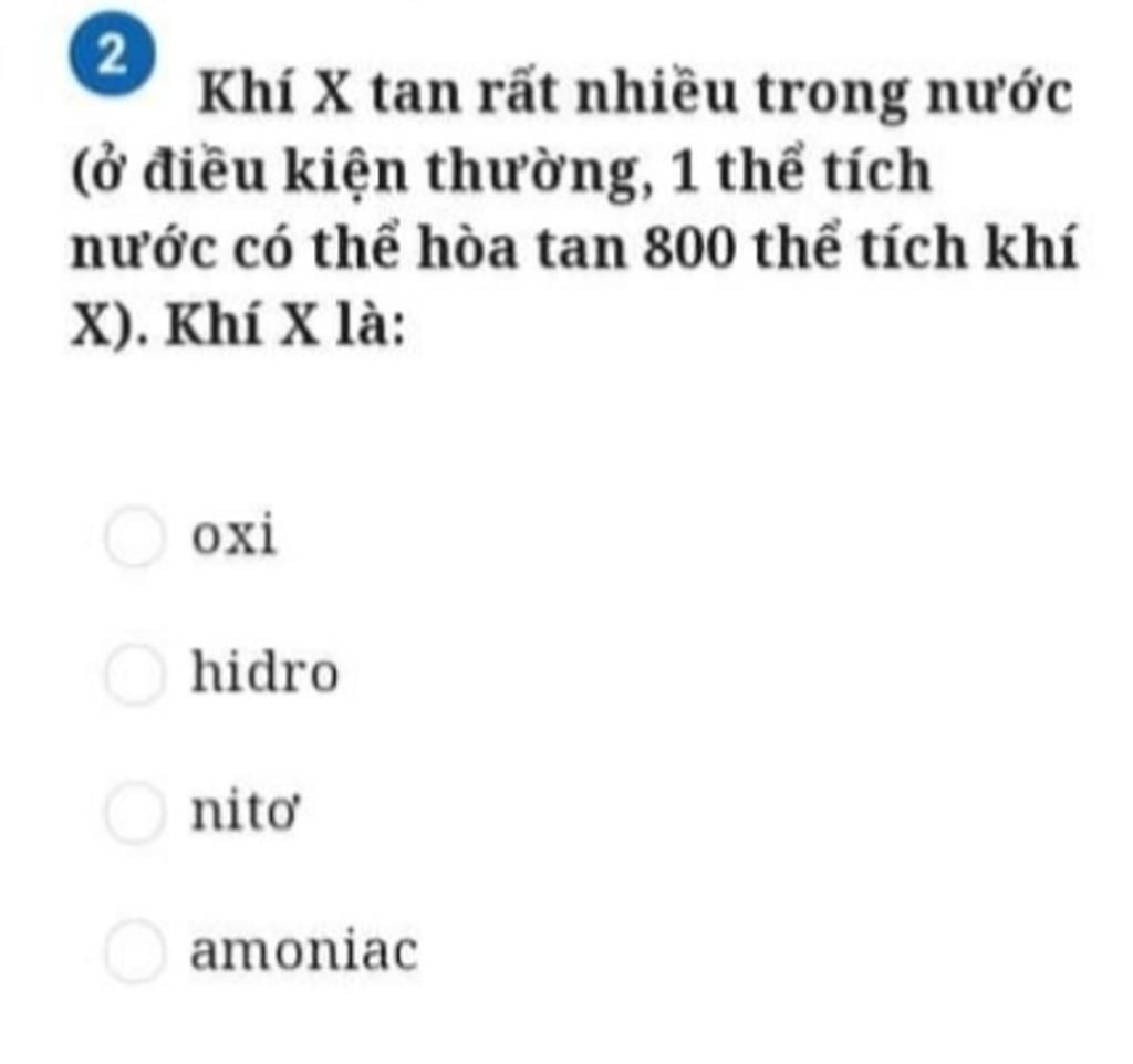 Amoniac ($NH_{3}$) ở điều kiện tiêu chuẩn, là một chất khí độc, có mùi khai, tan nhiều trong nước (ở điều kiện thường 1 lít nước hòa tan được 800 lít amoniac) do hình thành liên kết hidro với phân tử nước.
