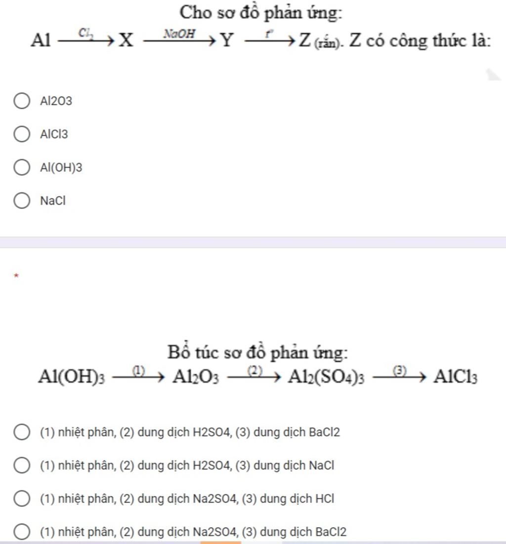 al(oh)3 là bz không tan nhiệt phân ra al2o3