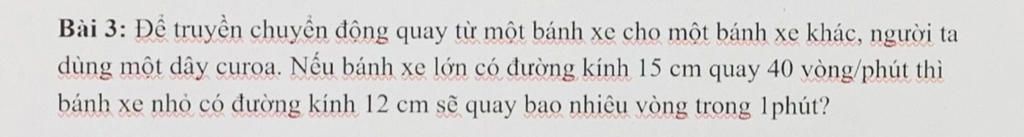 Vậy bánh xe nhỏ có đường kính 12 cm thì quay đuọc 50 vòng trong 1 phút