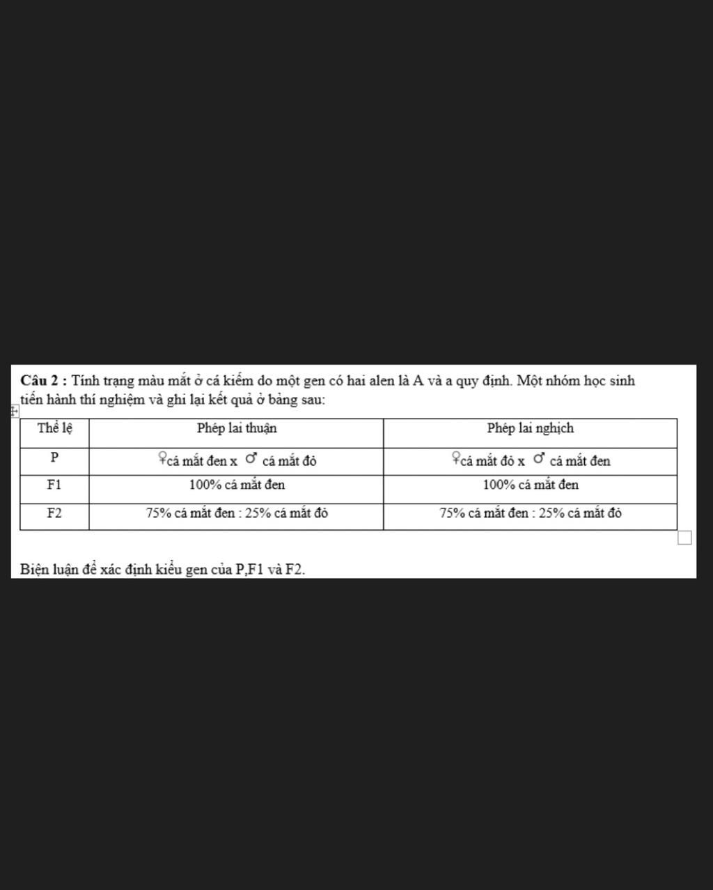 thì tỉ lệ F1 sẽ không được 100% mắt đen