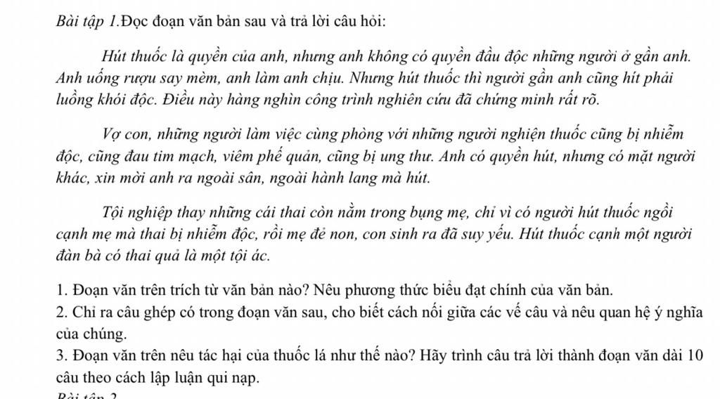 – Trích trong văn bản ” Ôn dịch, thuốc lá” của tác giả Nguyễn Khắc Viện . PTBĐ : LẬP LUẬN VÀ THUYẾT MINH