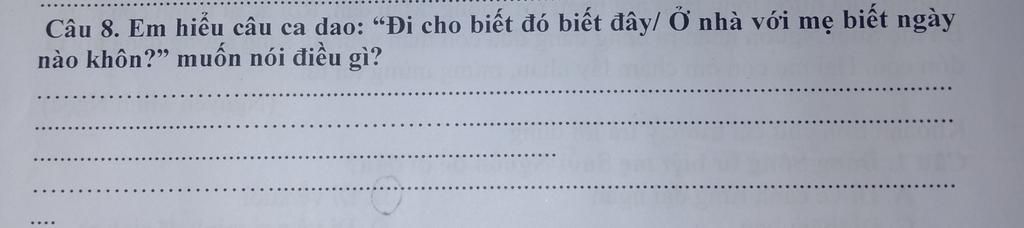 "Đi cho biết đó biết đây/ Ở nhà với mẹ viết ngày nào khôn". Câu ca dao muốn nhắn nhủ với chúng ta rằng: được sống trong vòng tay cha mẹ là điều tuyệt vời nhất, bởi cha mẹ luôn muốn dành những điều tốt đẹp nhất, chở che, chăm lo cho con từ bữa ăn tới giấc ngủ,...Nhưng nếu cứ mãi an phận sống trong vòng tay ấm áp đó, bạn có thể sẽ không có cơ hội được mở mang, học hỏi kiến thức từ bên ngoài cuộc sống. Vì thế mỗi chúng ta hãy biết tự ý thức, bước ra khỏi cùng an toàn để mở mang kiến thức, hoàn thiện bản thân.