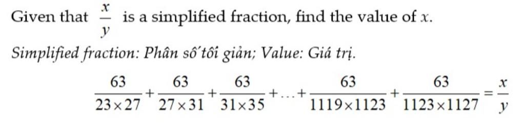 = \dfrac{63}{4}\left(\dfrac{1}{23} - \dfrac{1}{1127}\right)\\