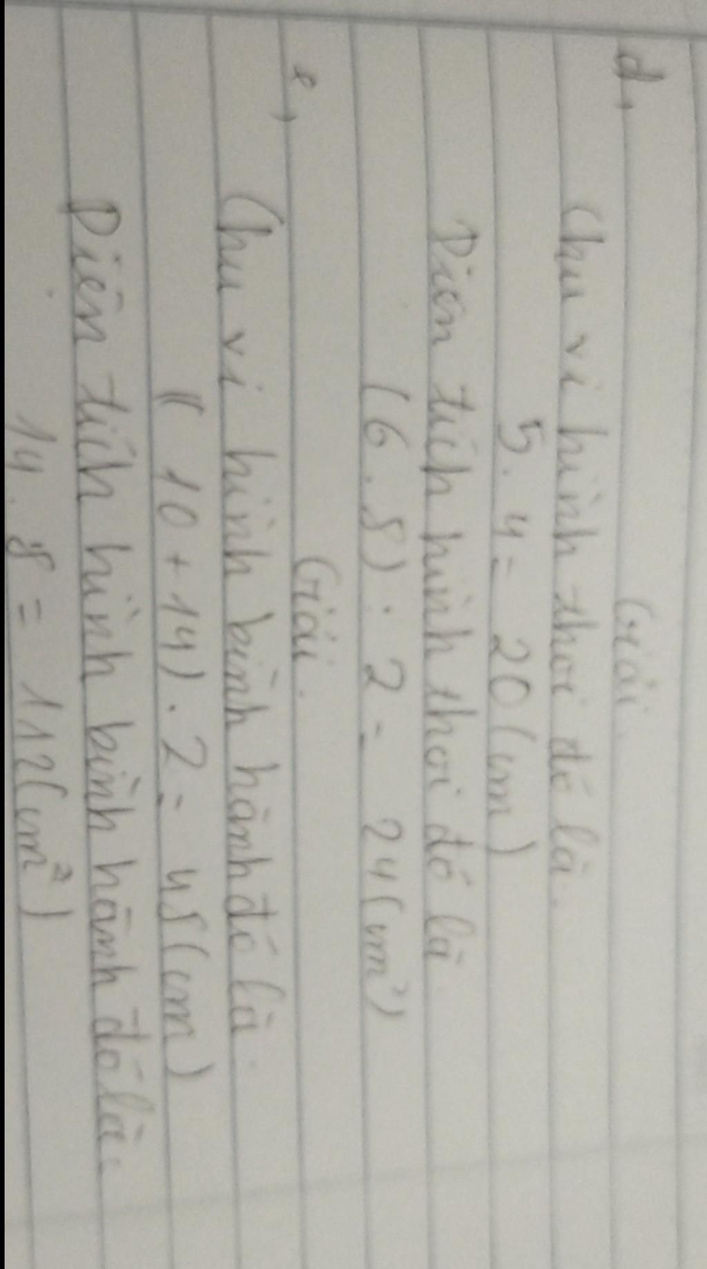 d) chu vi hình thoi là : 5 . 4 = 20(cm)