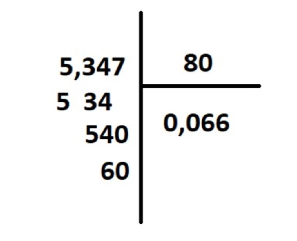 5,347 : 80 = 0,066 và dư 0,067 nhé!