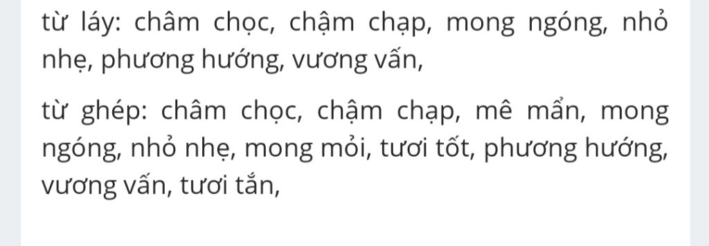 `->` Từ ghép: châm chọc, mong ngóng, nhỏ nhẹ, tươi tốt, phương hướng