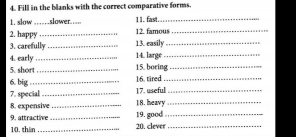 VD : 1. slow → slower