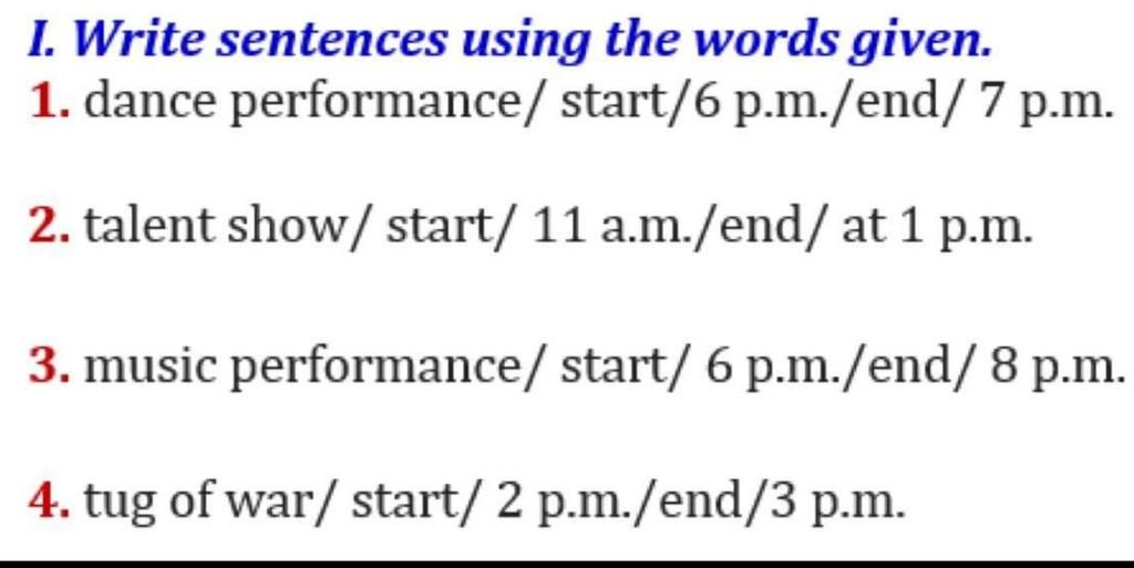 => The dance performance starts at 6 p.m and ends at 7 p.m
