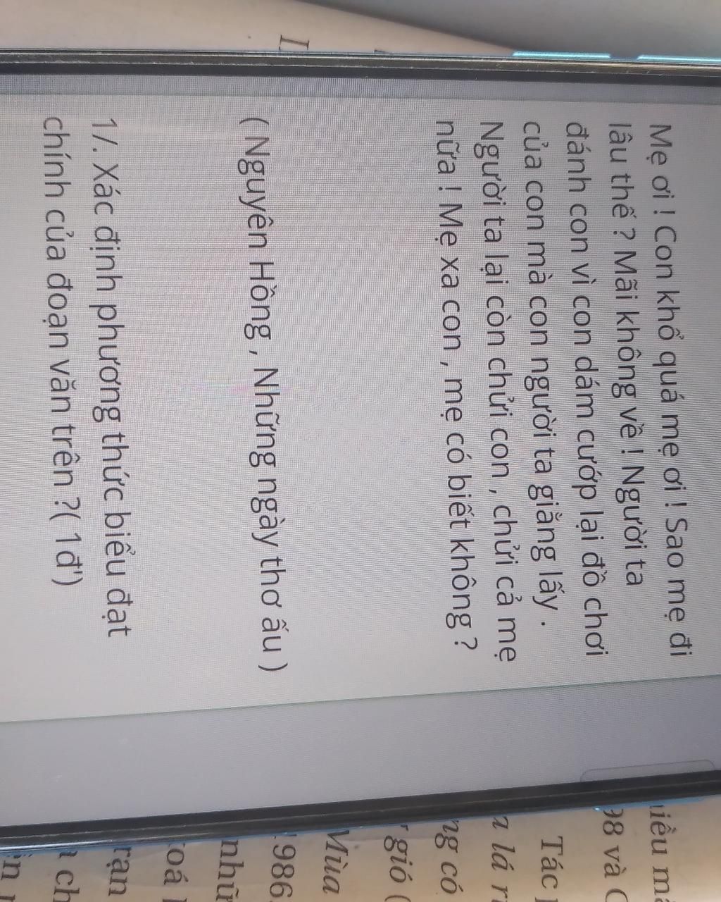 1/ Phương thức biểu đạt chính ở đoạn văn là " Biểu cảm "