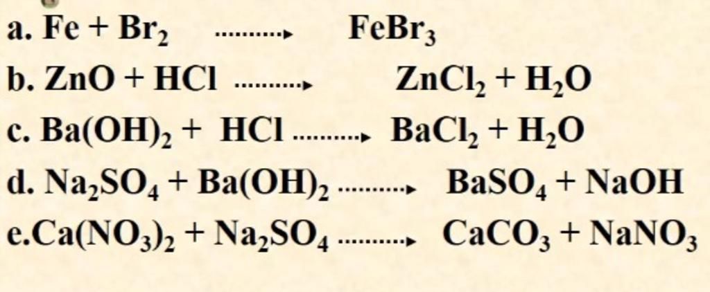 a) `2Fe+3Br_{2}` $\xrightarrow{t^o}$ `2FeBr_{3}`