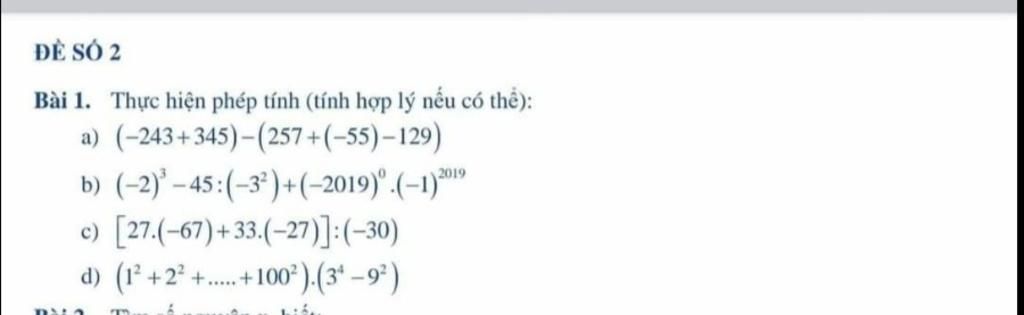 Bài 1. Thực hiện phép tính (tính hợp lý nếu có thể):