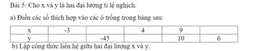 b) Công thức liên hệ giữa đại lượng x và y là :
