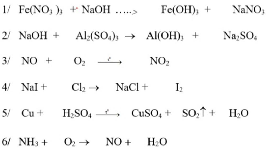 2/ $6Na(OH)_{}$ + $Al_{2}$$(SO4)_{3}$ $\longrightarrow$ $2Al(OH)_{3}$ +$3Na_{2}$$SO_{4}$
