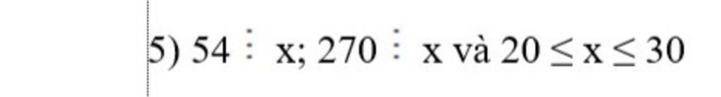 `=> x ∈ ƯC( 54; 270 ) = Ư( 54 ) = { 1; 2; 3; 6; 9; 18; 27; 54 }`