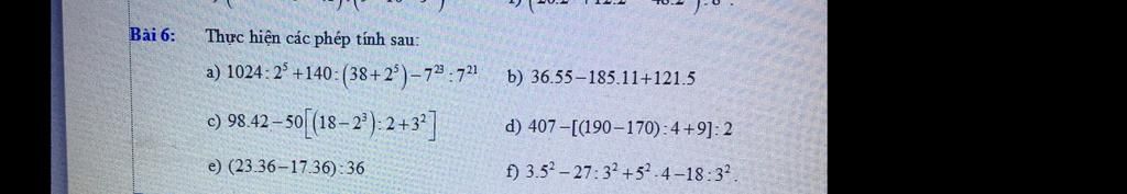 `a) 1024 : 2^5 + 140 : (38 + 2^5) - 7^23 - 7^21`