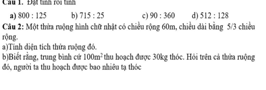 b) Trên cả thửa ruộng đó người ta thu hoạch được số tạ thóc là :
