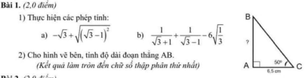 2) Cho hình vẽ bên, tinh đo dài đoạn thăng AB.