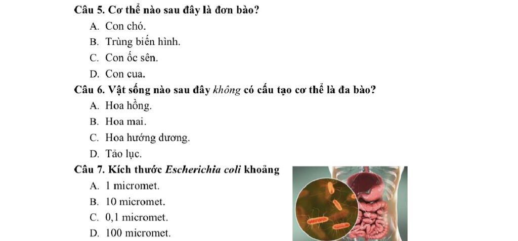 Con chó, con ốc sên, con cua đều là cơ thể đa bào.