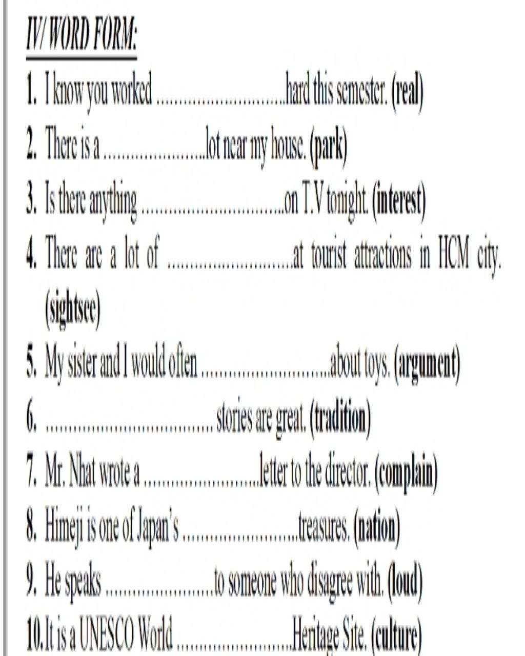 Giải thích: trước danh từ luôn là một tính từ, danh từ "nation" sẽ thành tính từ "national"