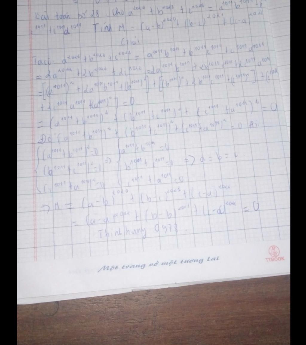 \Leftrightarrow {\left( {{a^{1011}} - {b^{1011}}} \right)^2} + {\left( {{b^{1011}} - {c^{1011}}} \right)^2} + {\left( {{c^{1011}} - {a^{1011}}} \right)^2} \ge 0\\