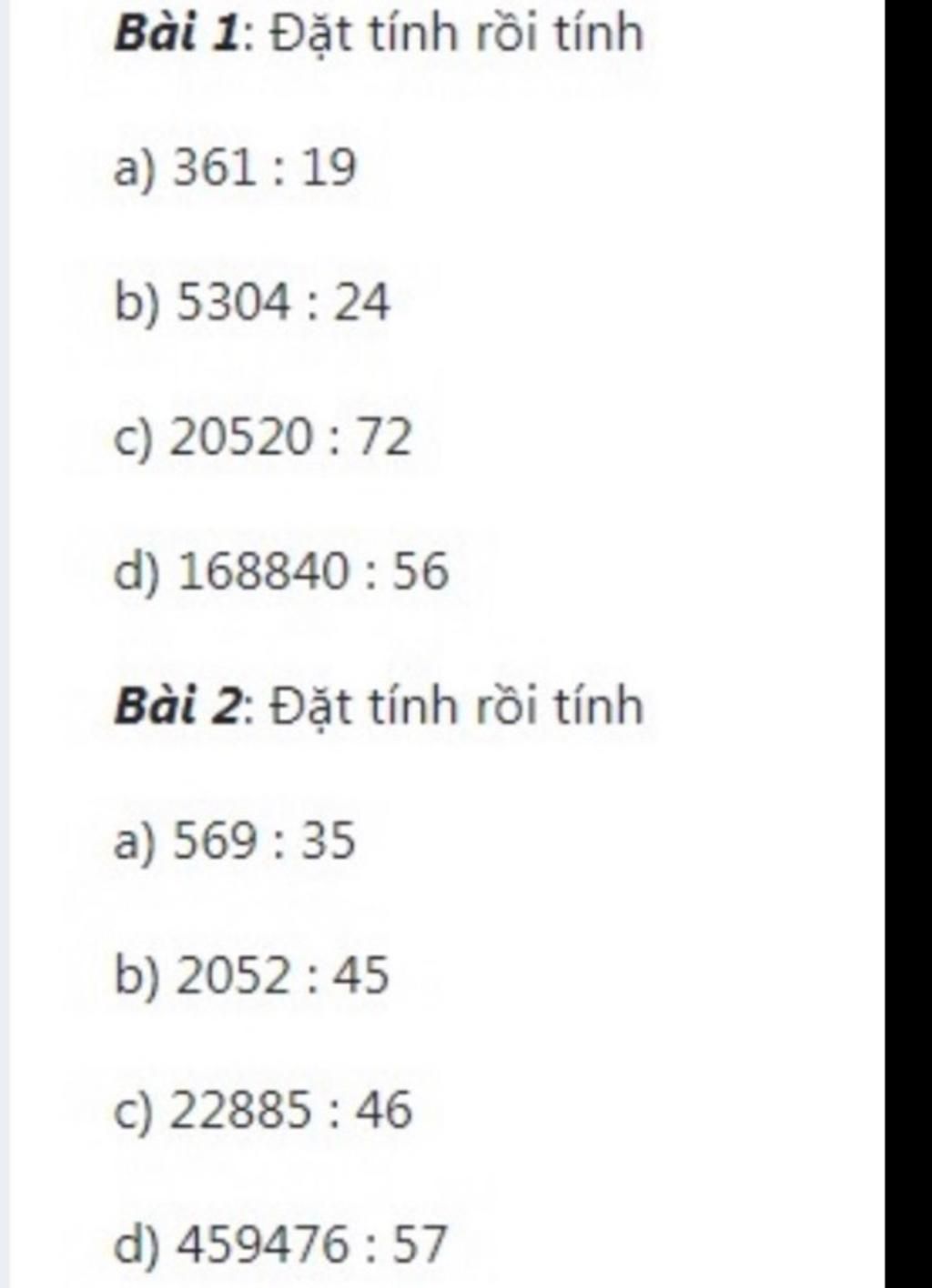 `2` Số bị chia ở câu `a` là `569` `b` là `2052` `c` là `22885` `d` là `459476`