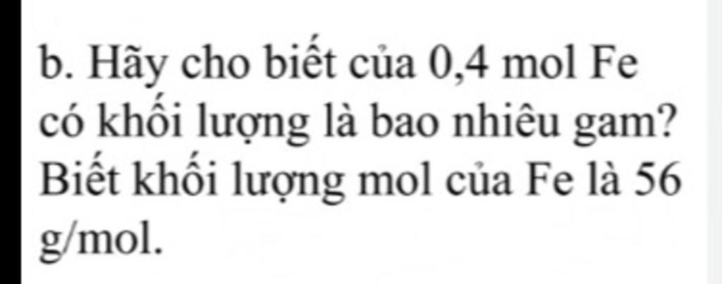 b, $m_{Fe}=n.M=0,4.56=22,4g$