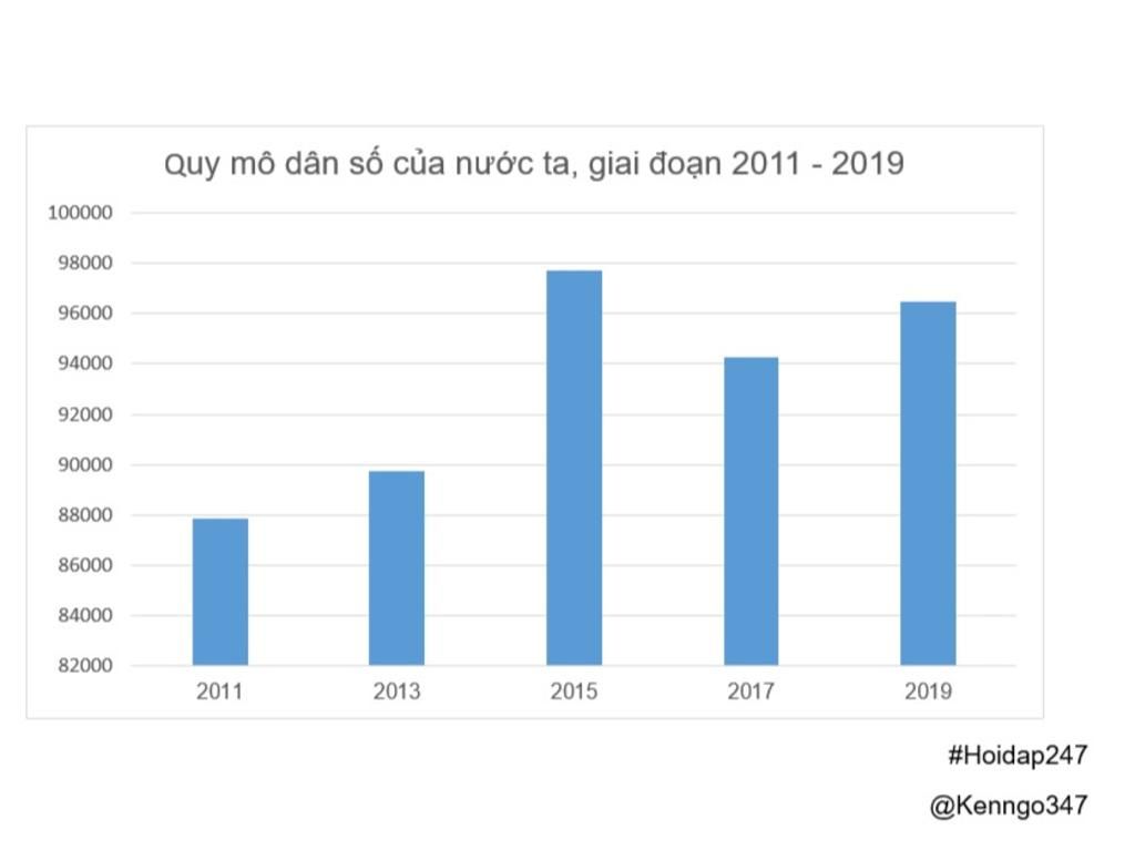 b. Nhận xét: Dân số nước ta tăng nhanh vào giai đoạn 2011-2015, đến năm 2017 thì nhân số có sự giảm đi, sau đó tăng khá nhanh trở lại vào năm 2019.