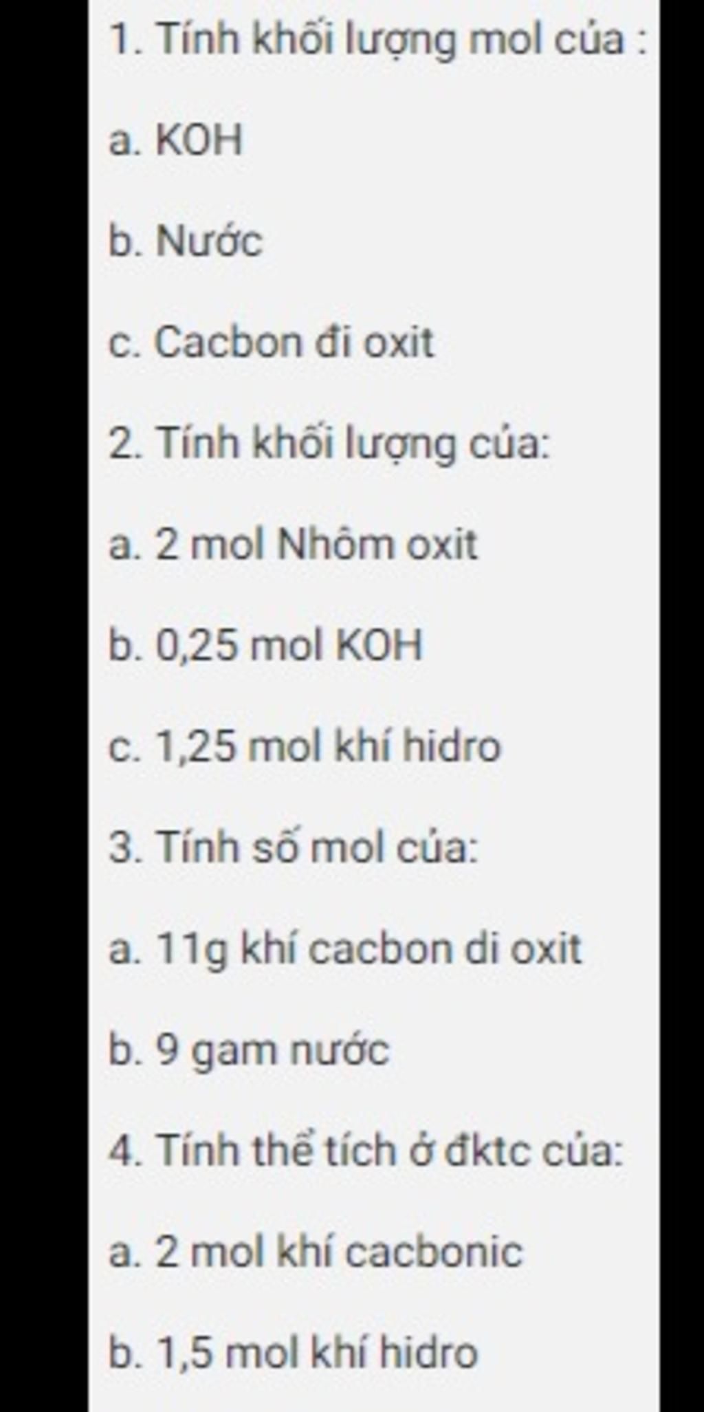 c) khối lượng MOL của phân tử cacbon đioxit là : $M_{CO2}$ = 44 g/mol
