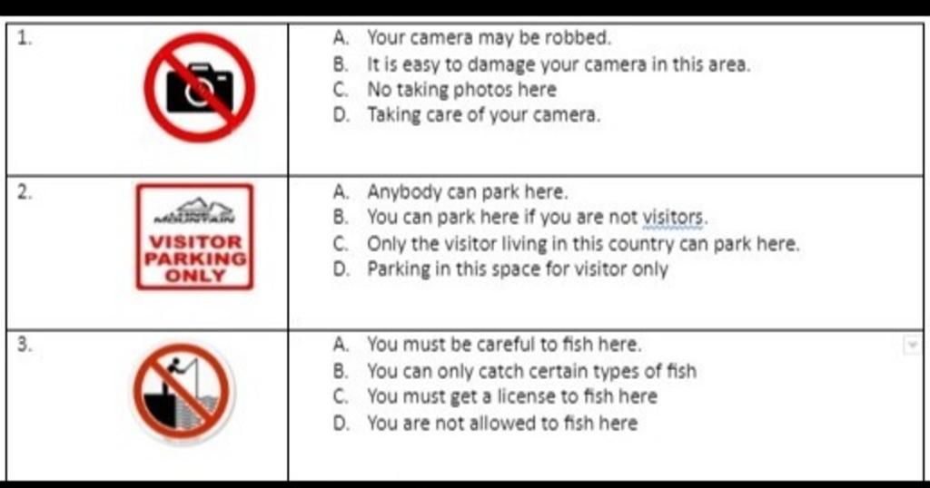 `1.C` ( Gạch chéo máy ảnh tức là không cho chụp ảnh `=>` C )