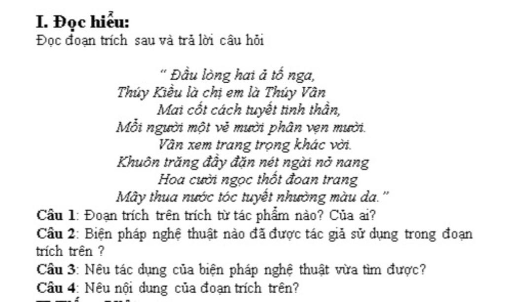 Đoạn trích trên trích từ tác phẩm truyện kiều . Của Nguyễn Du