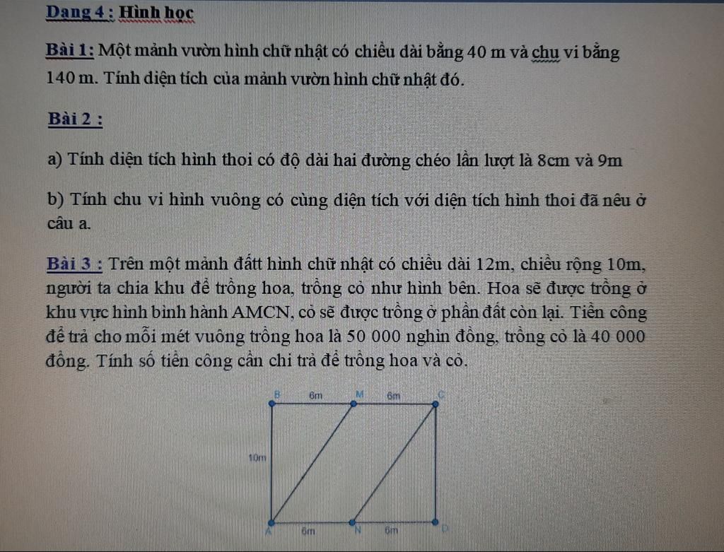 Số tiền công cần chi trả để trồng hoa và cỏ là: