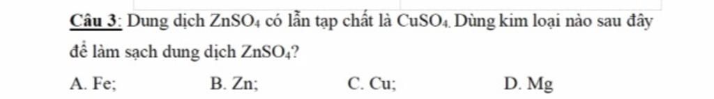 Nếu dùng dư Zn, Cu tạo thành không tan được tách ra khỏi dung dịch và thu được dung dịch ZnSO4 tinh khiết.