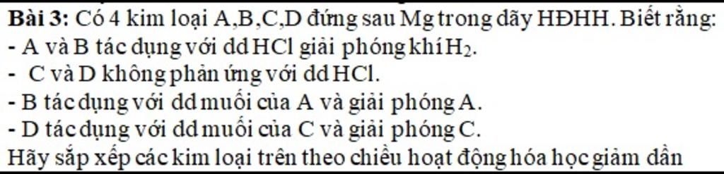 A, B phản ứng với HCl → A, B mạnh hơn C, D