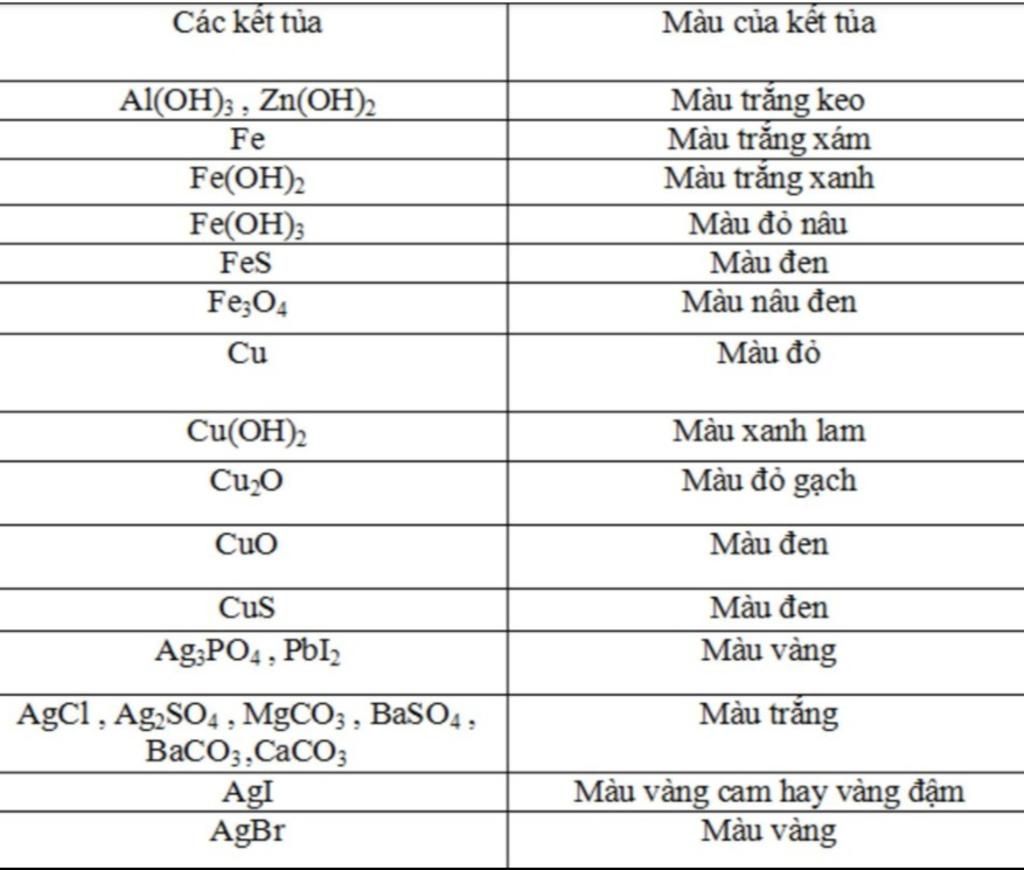 chỉ có đồng là đặc biệt, vậy mấy cái khác phải kết tủa phải ko ạ?
