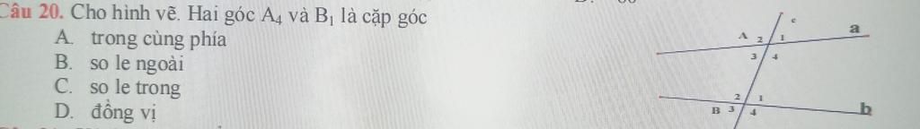 Bài 20 : Cho hình vẽ . Hai góc A4 và B1 là cặp góc
