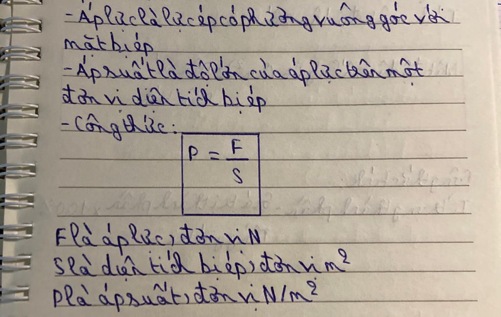 - Áp lực là lực tác động trên diện tích bề mặt của một vật. Lực ép vuông góc với diện tích bề mặt chịu lực.
