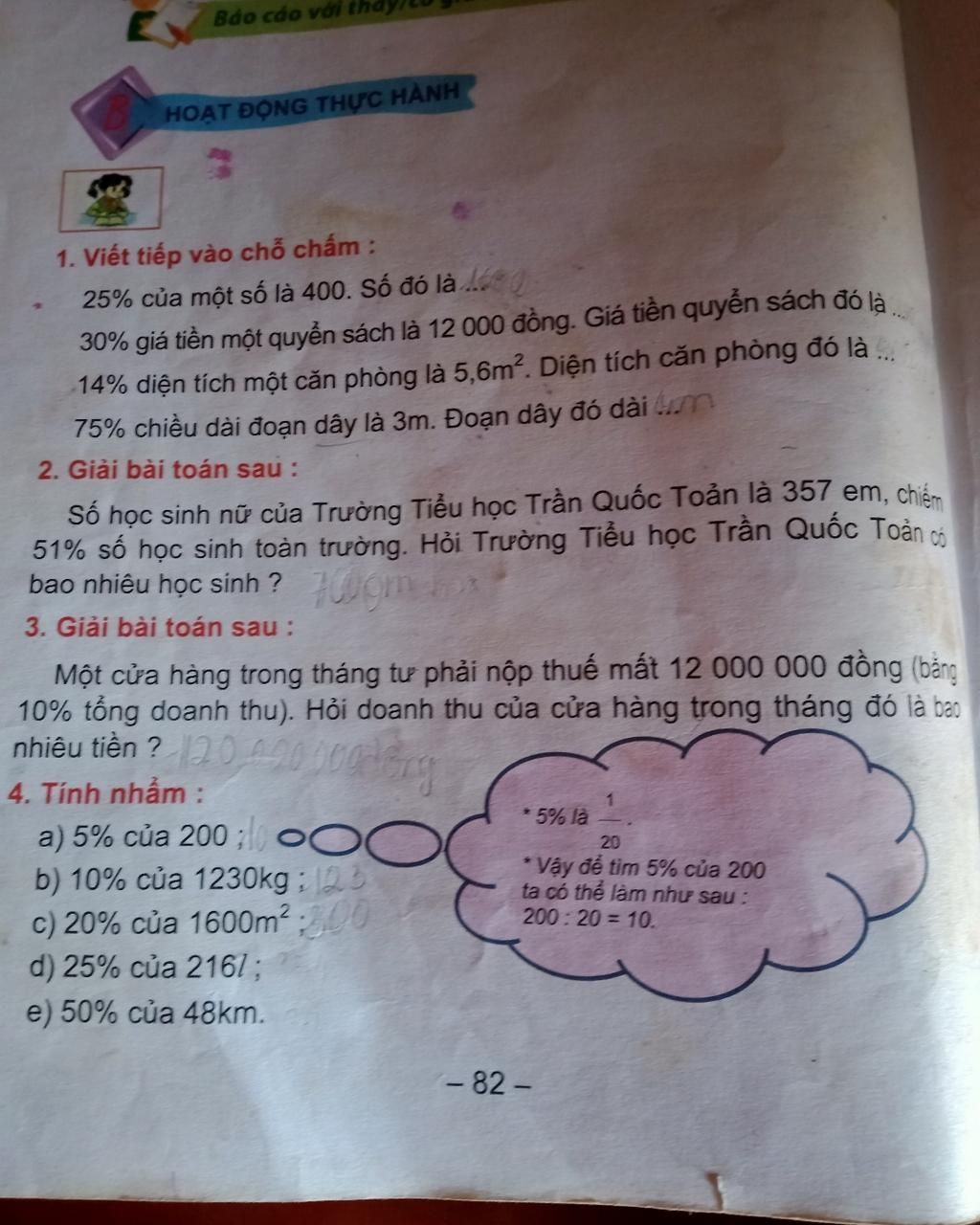 a) 25% của 400 là : 400 : 100 x 25 = 100