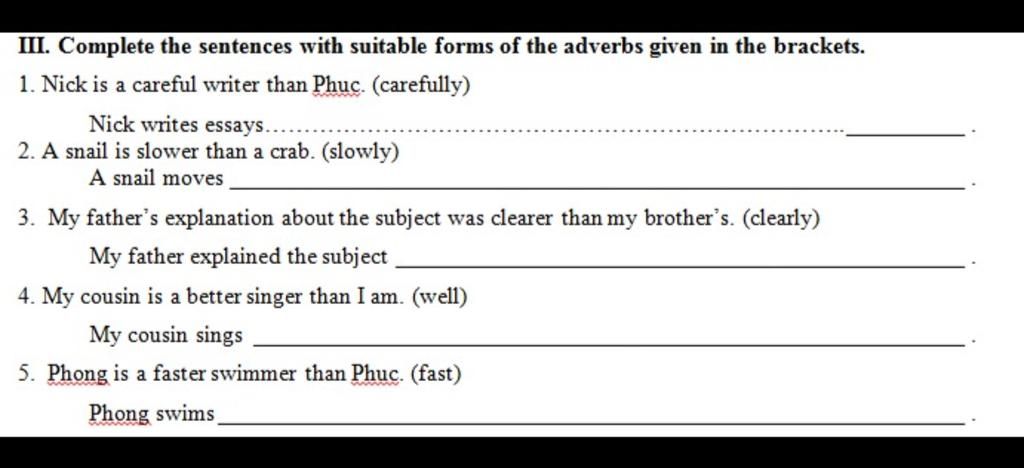 III. Complete the sentences with suitable forms of the adverbs given in the brackets