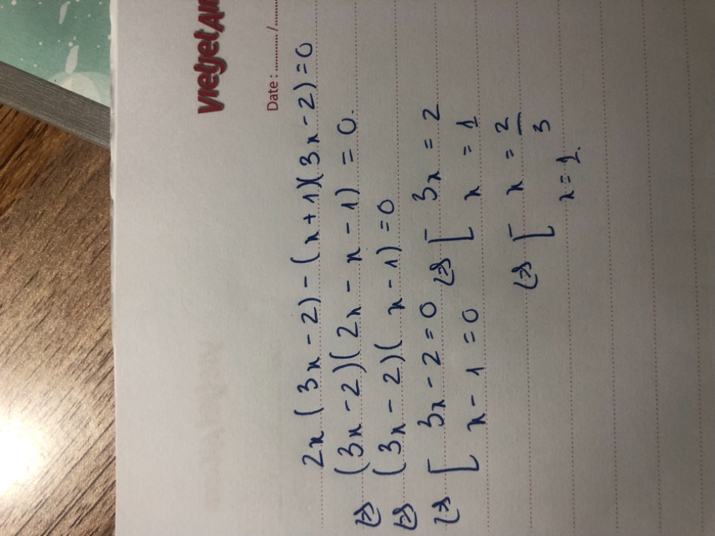 $⇔ ( 3x - 2 )( 2x - x - 1 ) = 0 $