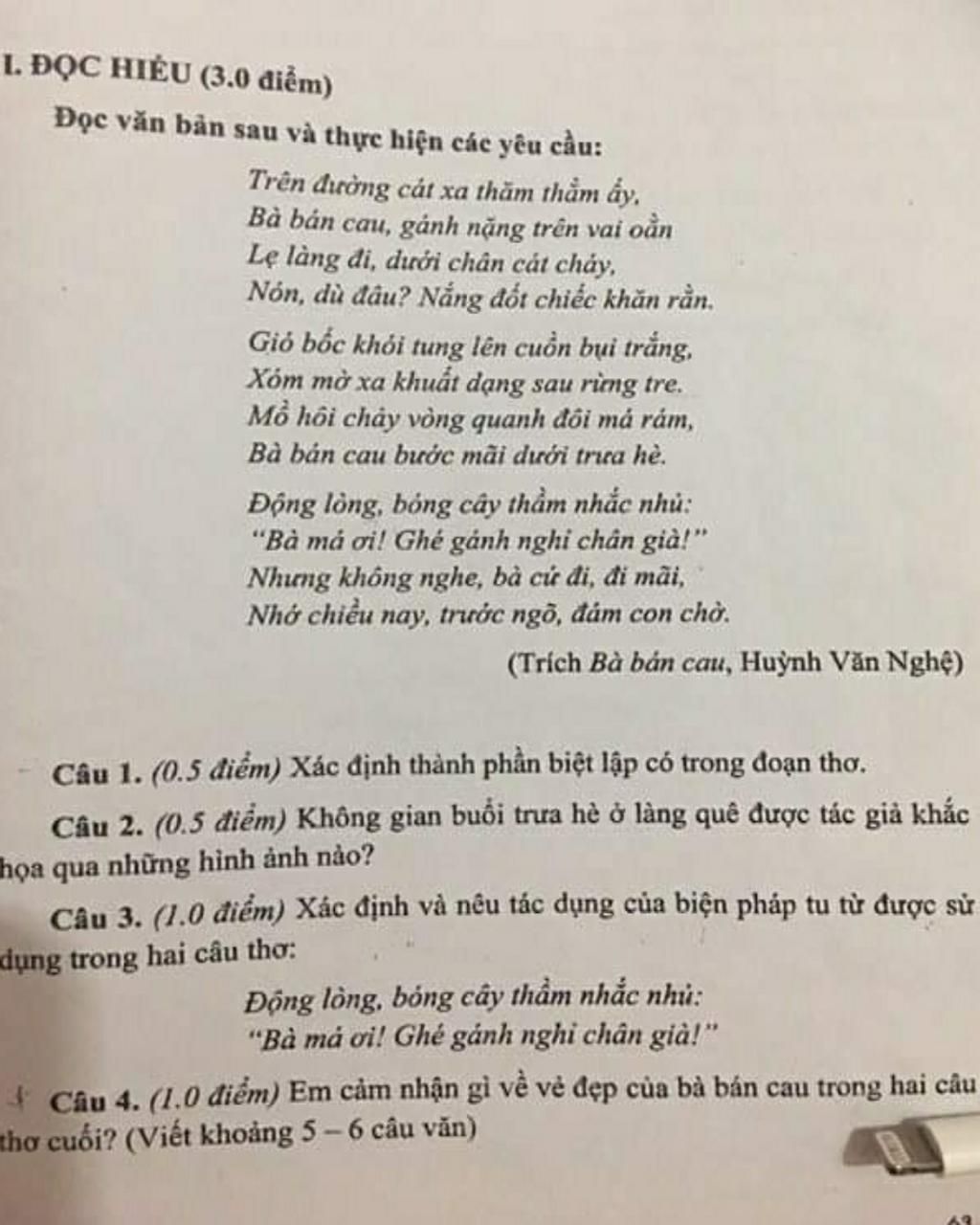 + Thấy rõ cảm xúc thương, lo lắng cho bà bán cau. Nắng trưa hè gay gắt vẫn bước đi trên vỉa đường, ngay cả cậu gọi mời bà nghỉ mà bà vẫn bước, vẫn bước như giữ rõ ý định.