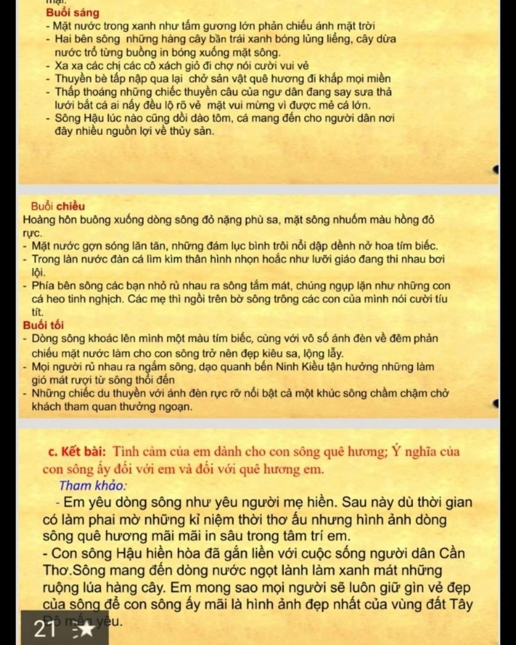 2. Thân bài: Tả dòng sông.
