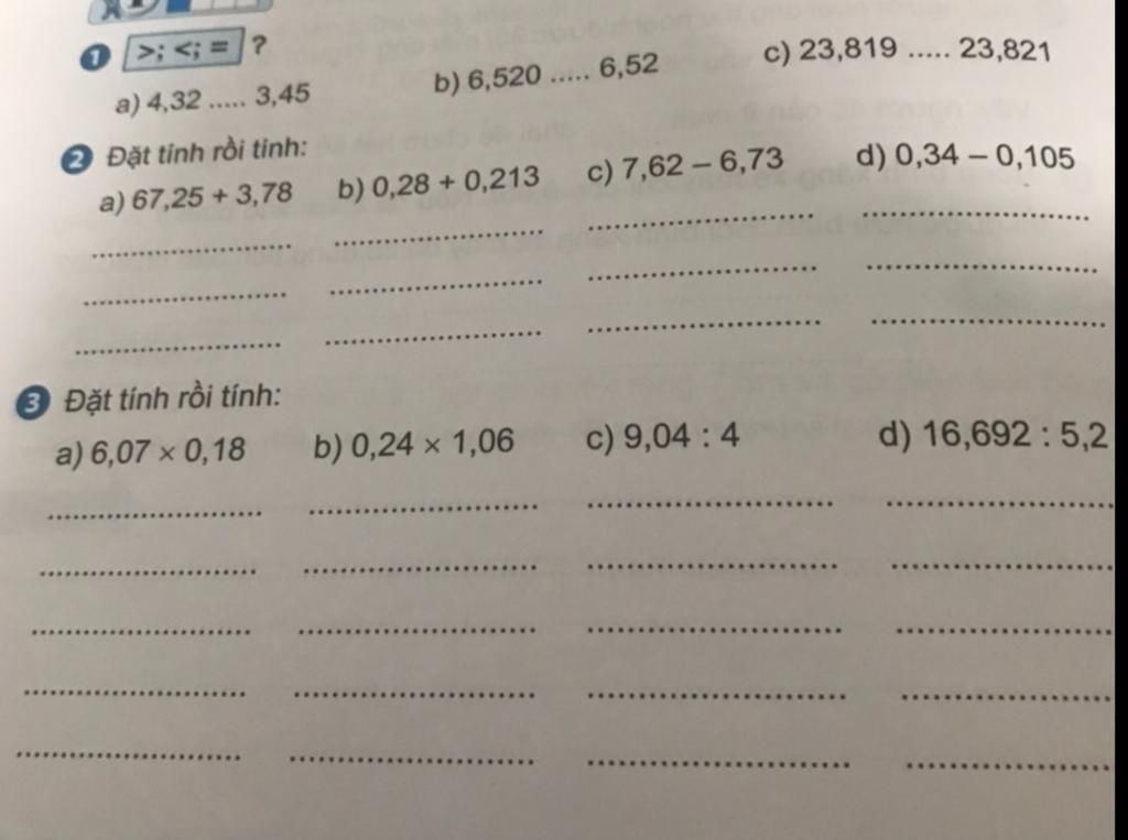 b) 0,28 + 0,213 c) 7,62 – 6,73