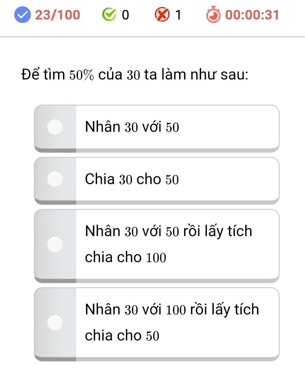 nhân 30 với 50 rồi lấy tích chia cho 100