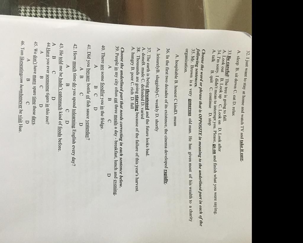 toose the word or phrase that is OPPOSITE in meaning to the ...
