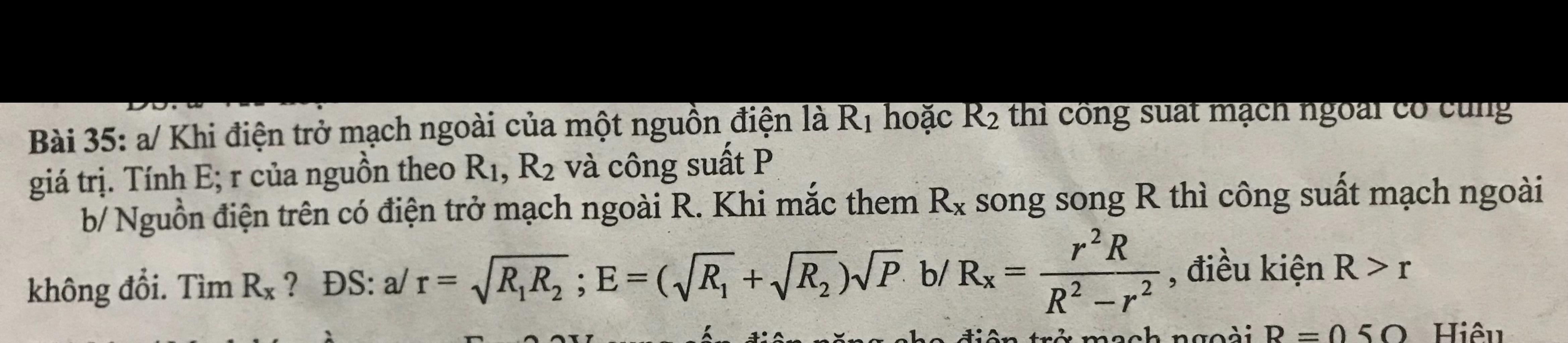 Bài 35: a/ Khi điện trở mạch ngoài của một nguồn điện là Rị hoặc R2 thì công suất mạch ngoài có củung
