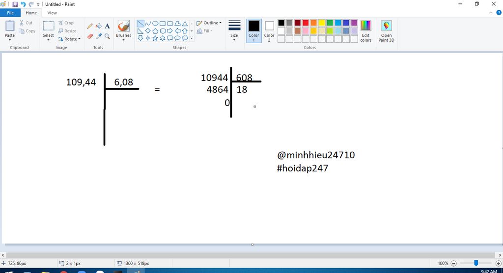 ⇒ $109,44$ $:$ $6,08$ $=$ $18$