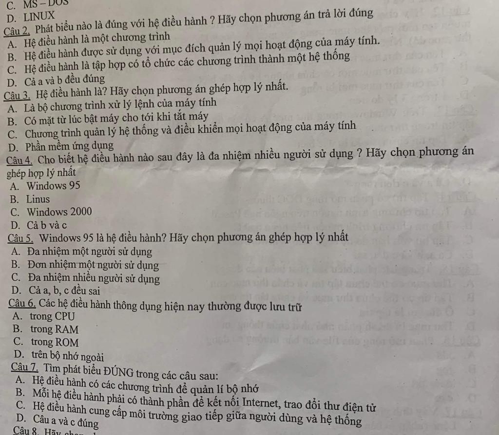Câu 6. Các hệ điểu hành thông dụng hiện nay thường được lưu trữ