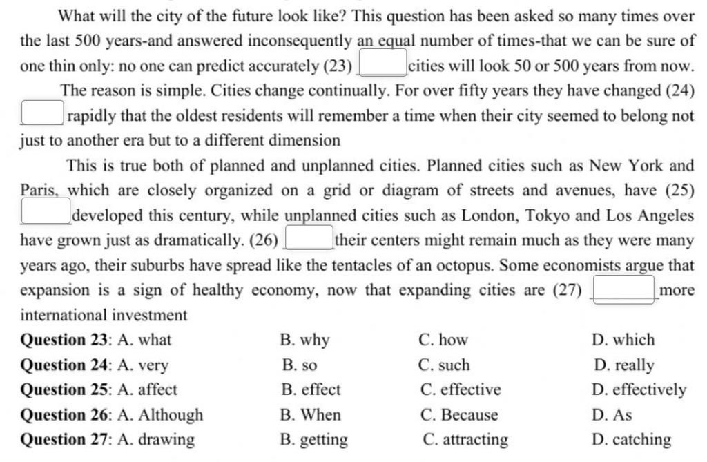 23 how ( dựa vào nghĩa : thành phố trong như thế nào .... )